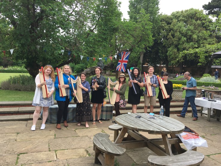This story also takes place in Stratford and happens to be on the Queen’s birthday. In England, the Queen’s birthday is celebrated EVERYWHERE. So my group was just casually walking down the street when we were invited into a garden party for the Queen’s birthday! After looking around and admiring the scenery of the garden, a woman asked if we would like to learn how to play the harp! Of course we wanted to learn how to play the harp! The best part is that we learned how to play Sound of Silence by Simon and Garfunkel. Needless to say, it was an epic experience.